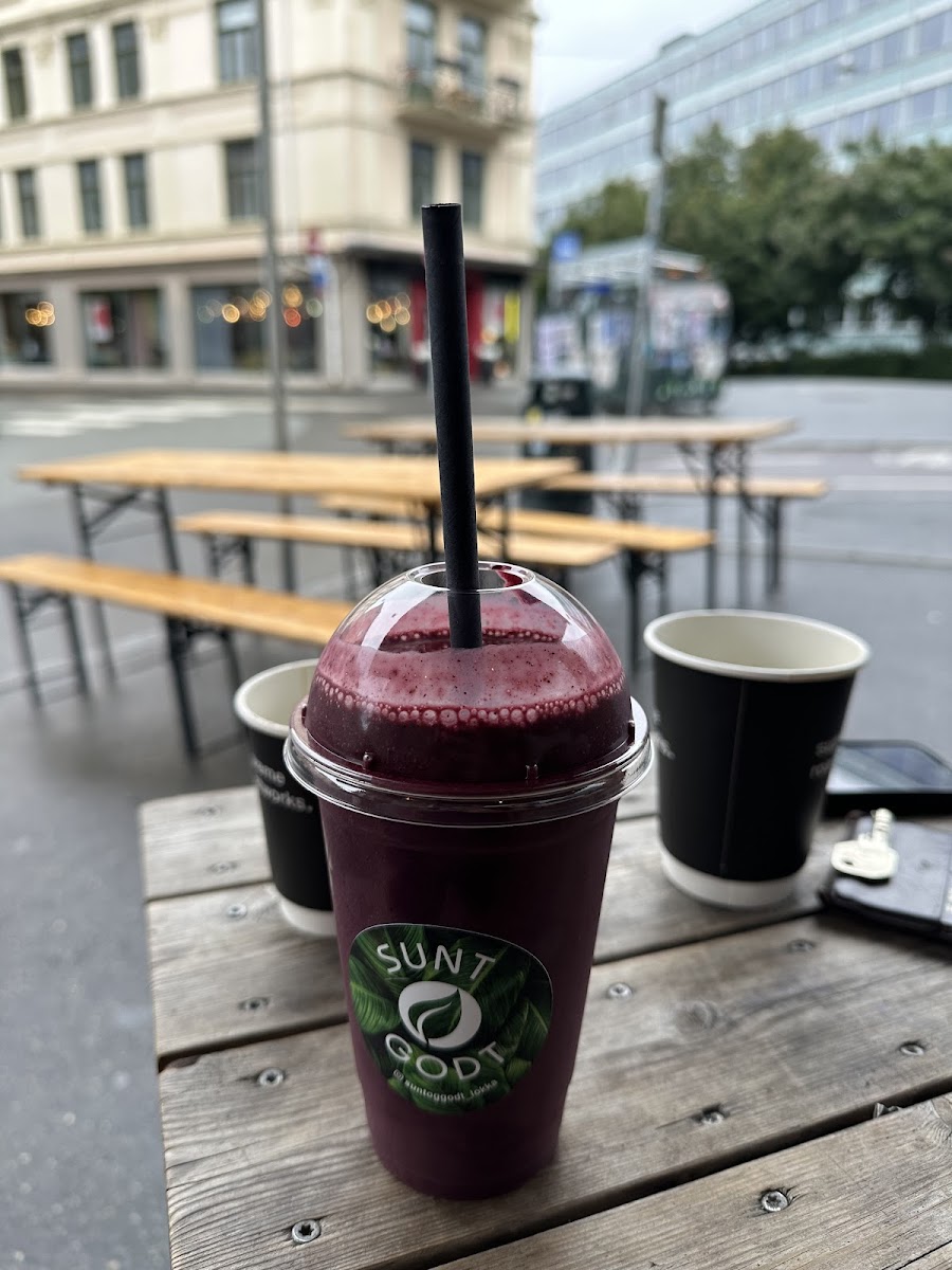 What sets Sunt og Godt apart is its commitment to fresh, high-quality ingredients. Their smoothies, starting at just NOK 119.00, are crafted with care and creativity. Imagine sipping on a Crunch Smoothie that marries the vibrant flavors of açaí, banana, and blueberries, topped with a delightful crunch from oats, cocoa nibs, and assorted nuts. The Açaí Bowl is another signature offering, a kaleidoscope of textures and flavors, featuring a creamy blend enriched with chia seeds and an assortment of fresh fruits, tailored to your preference.